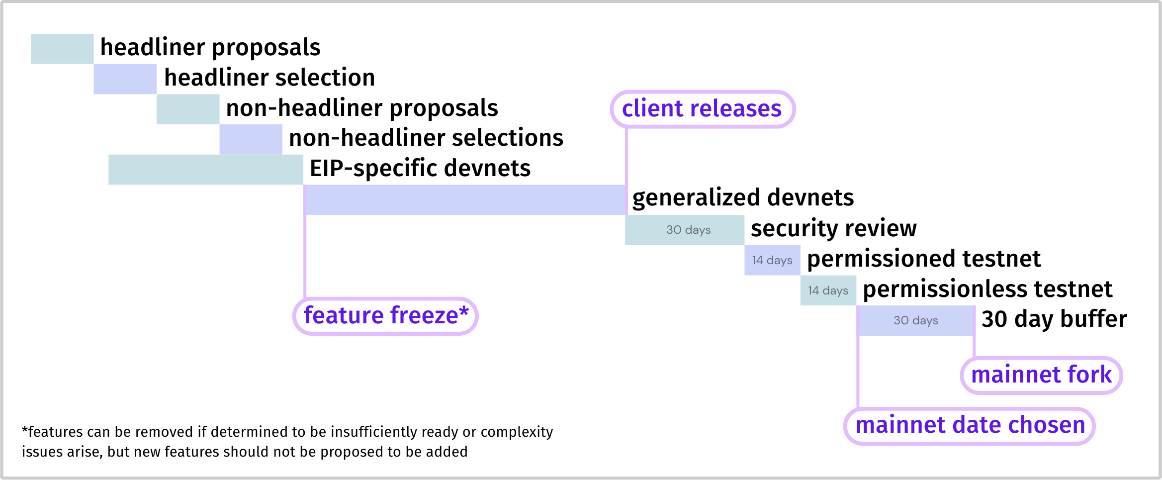 This helped ACD choose Glamsterdam’s major features, one for the consensus layer (ePBS) and one for the execution layer (BALs). Minor features (“non-headling EIPs”) were then proposed with a deadline to submit. We are currently in the process of selecting Glamsterdam’s minor features from the total list of Proposed EIPs.