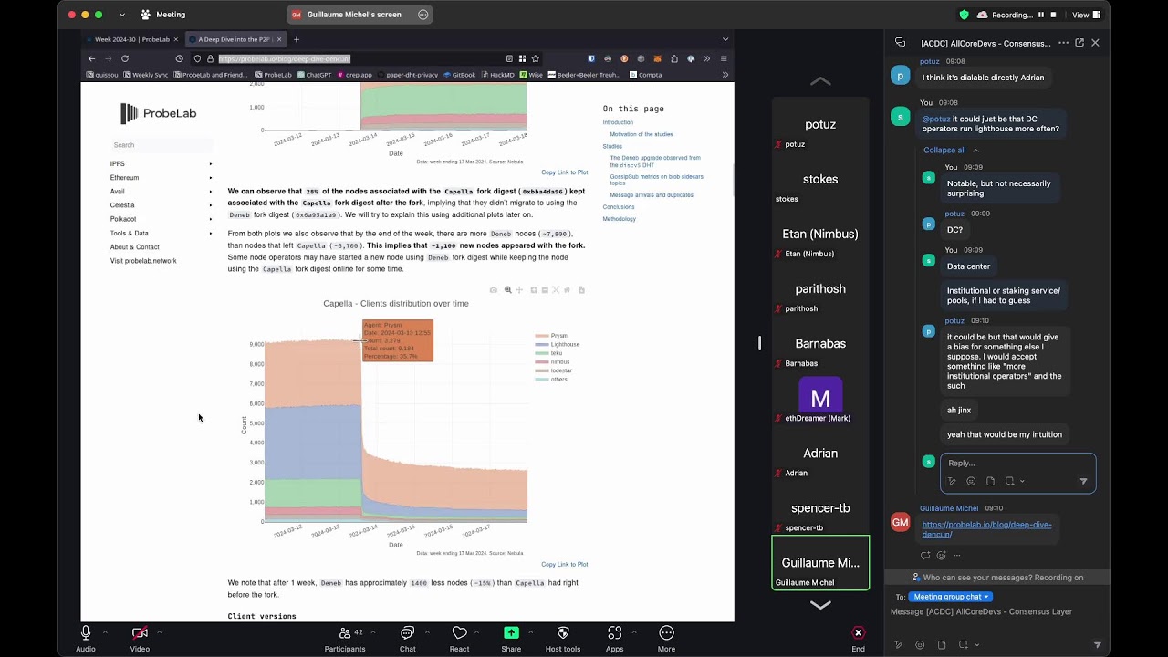 - Closed the call with a presentation by ProbeLab to share their work on networking/discovery protocol analysis; check their website here: Week 2024-29 | ProbeLab Analytics