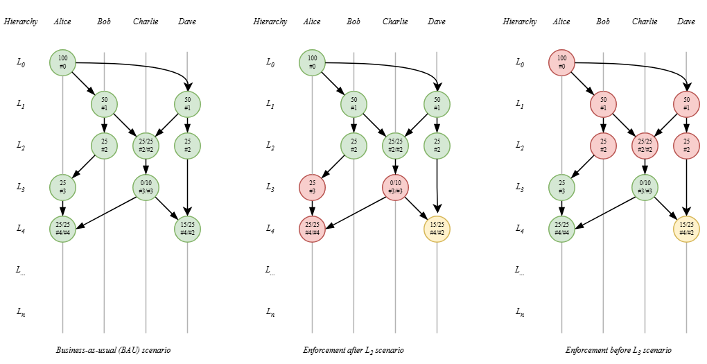 One of the key benefits of the Forest is that it natively supports reverse topological traversal. Each token stores a reference to its parent token, allowing to efficiently iterate parentOf back to the root of the DAG.