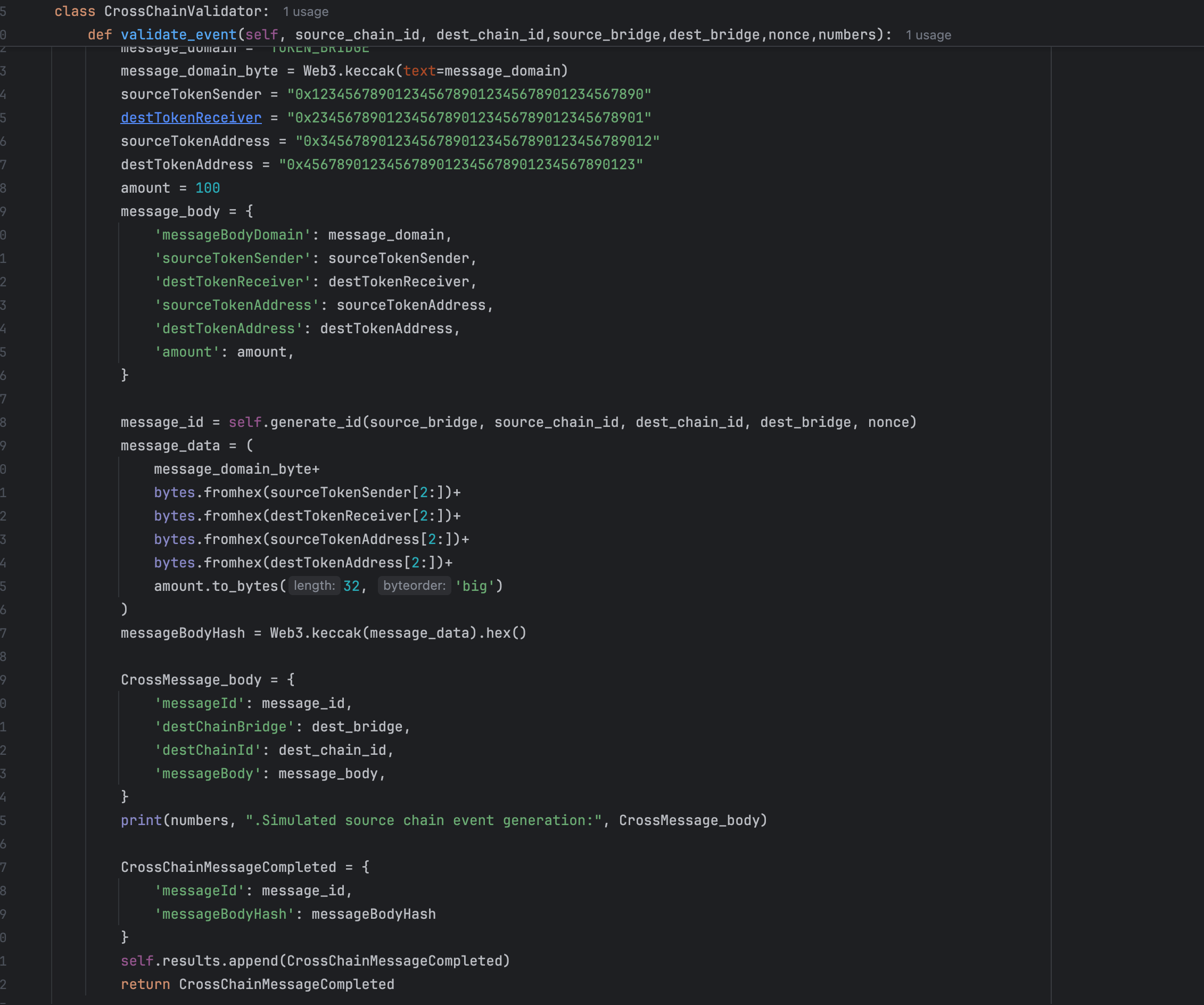* @dev Generates hash for cross-chain message body